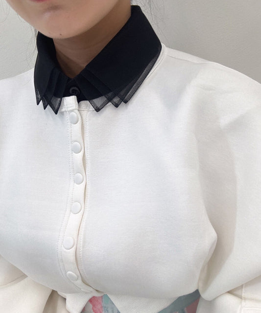 button tulle round collar tunic