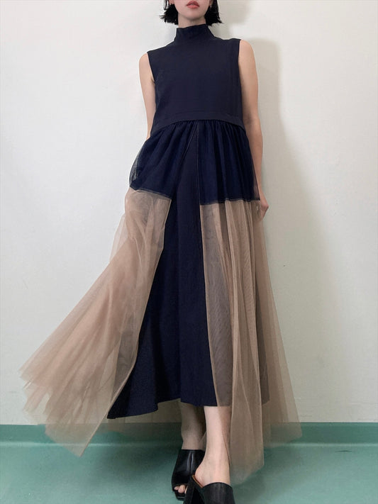 sleeveless bycolor tulle onepiece