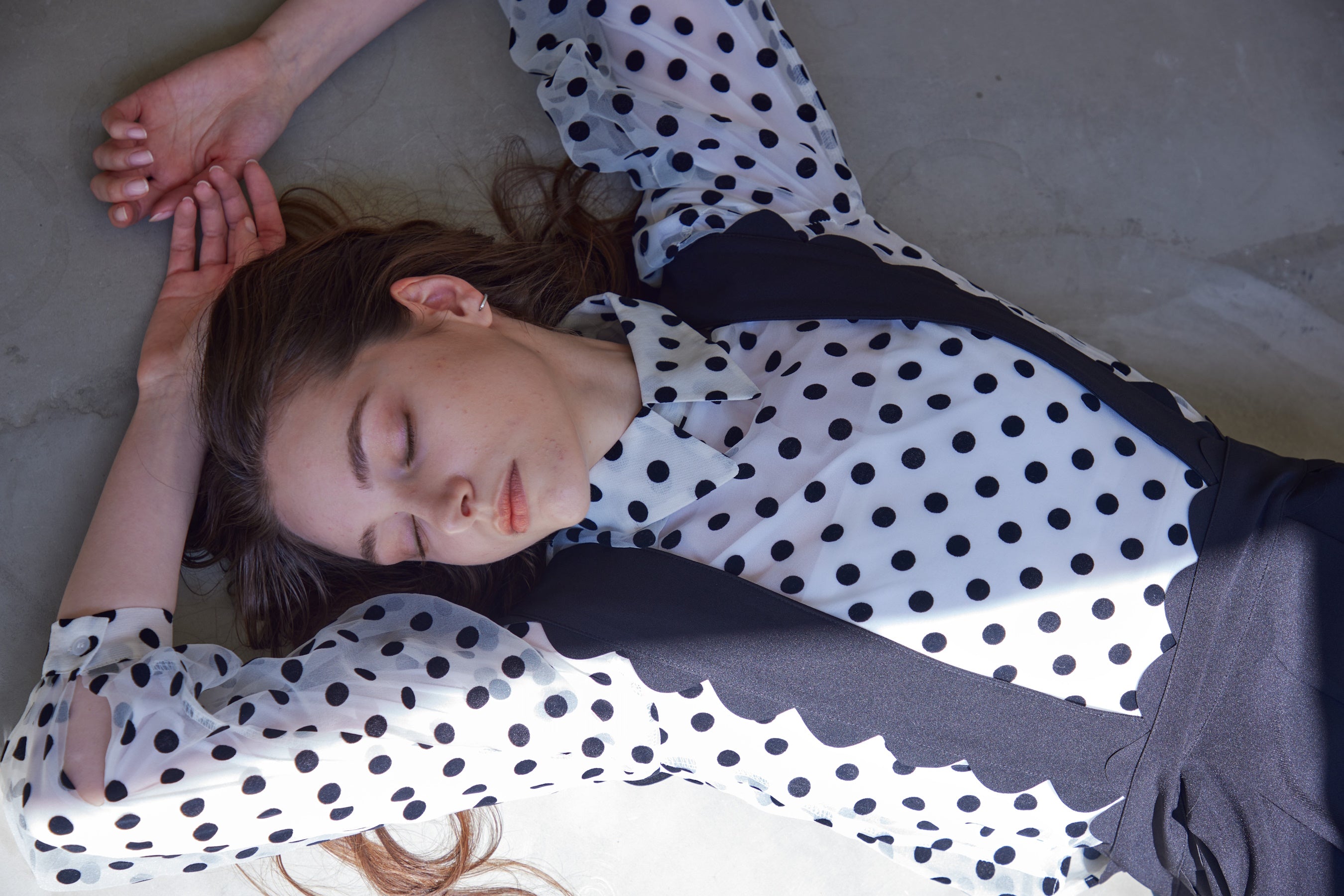 chiffon polka dots bow tie blouse