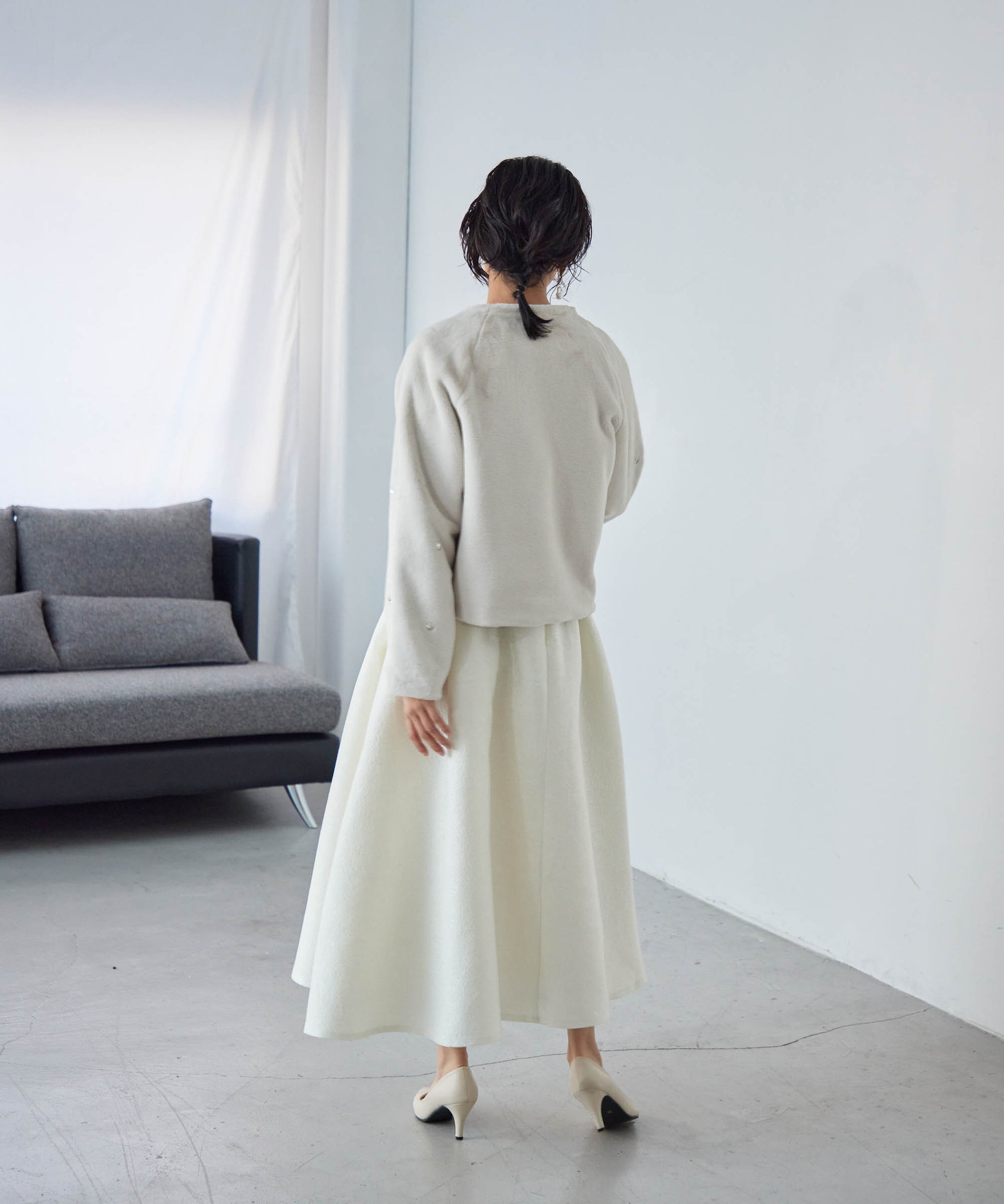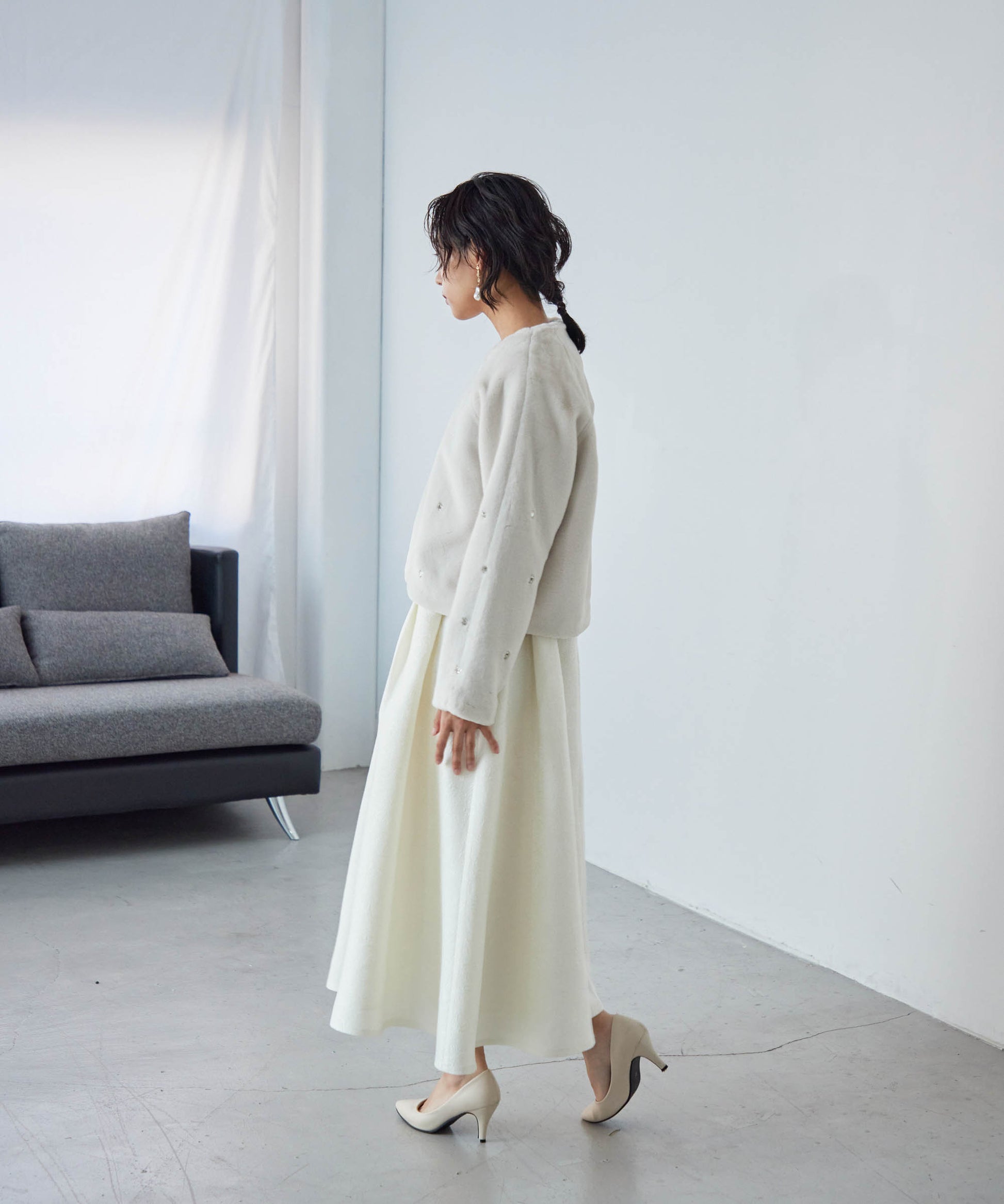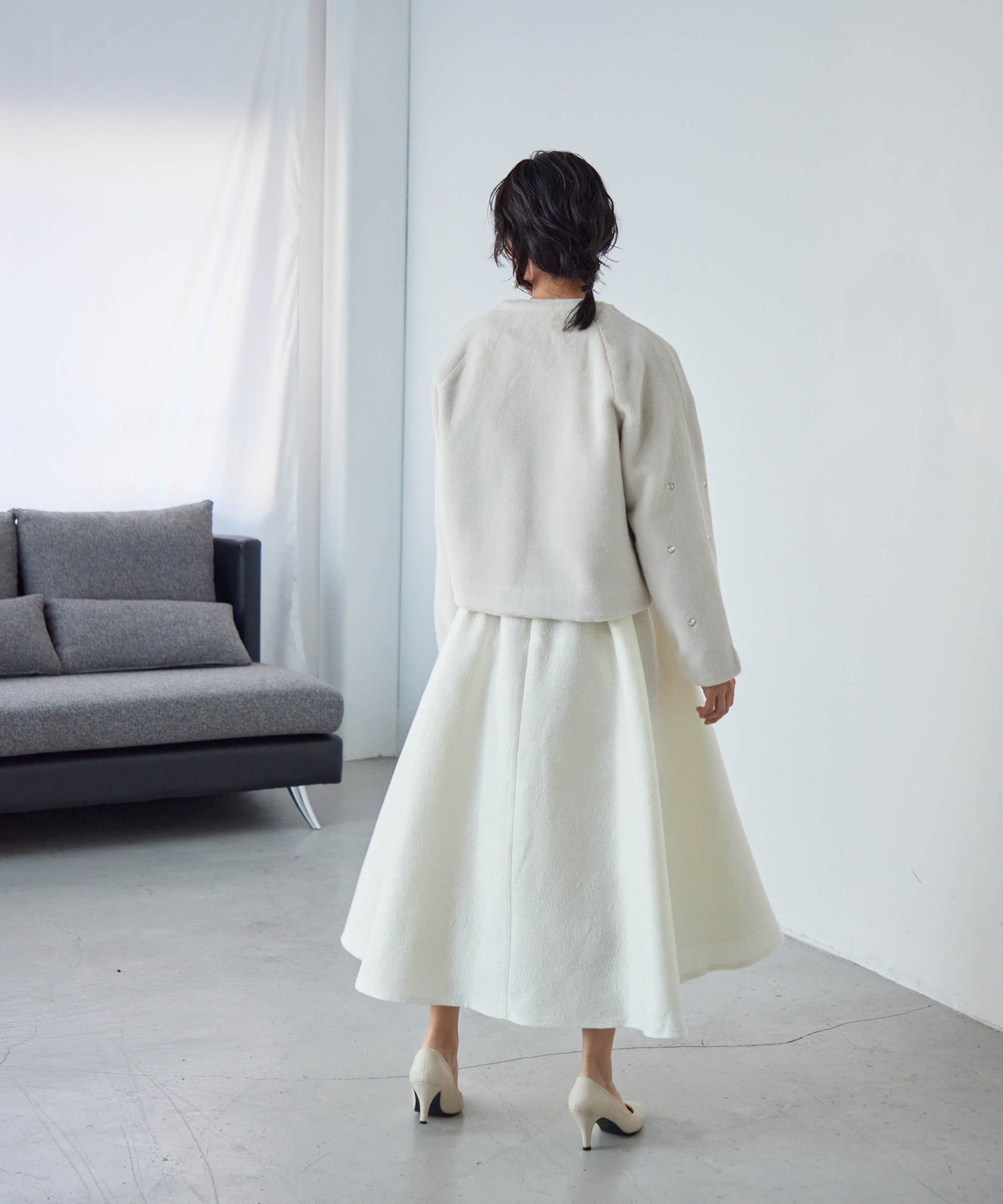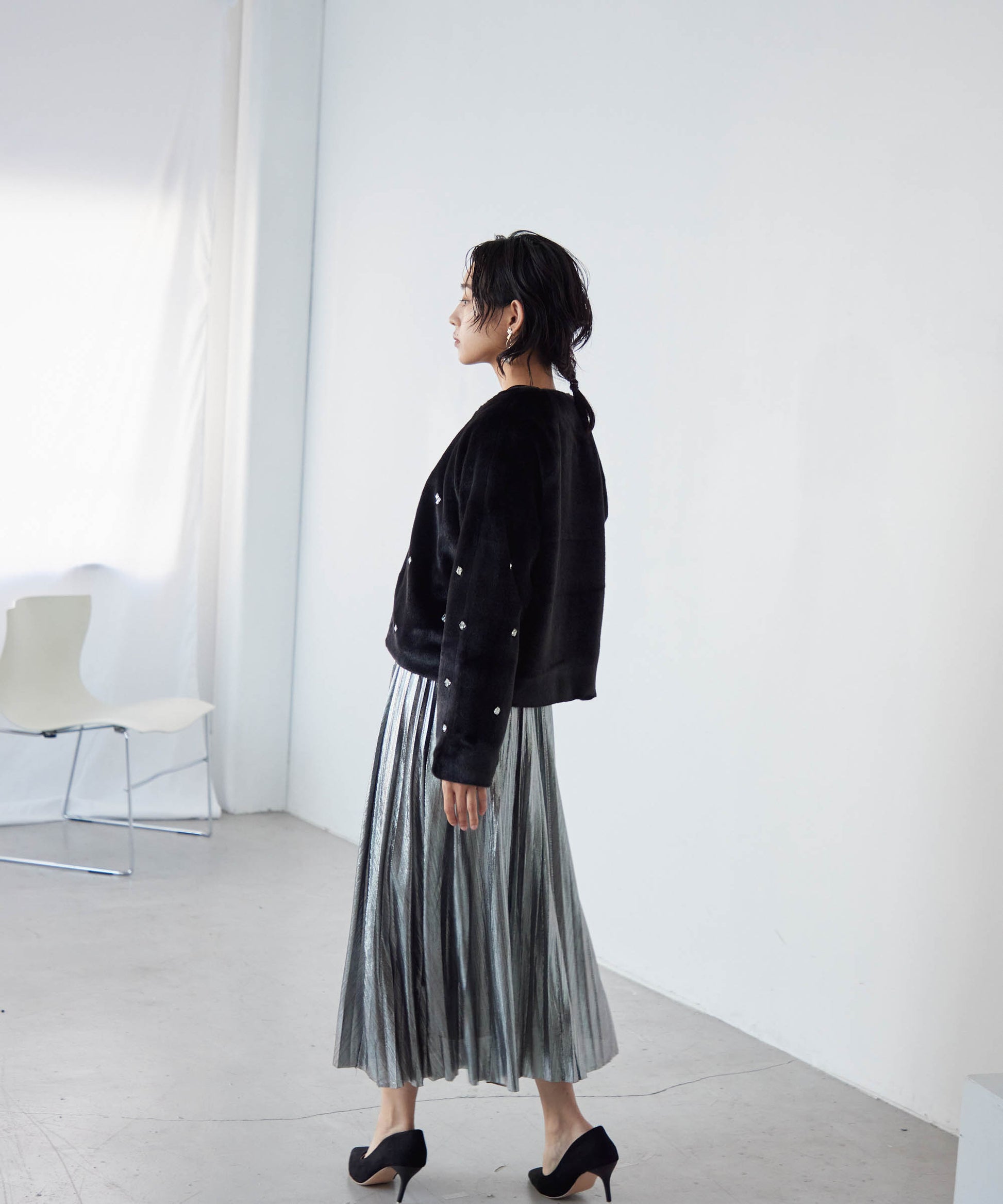 エレガンスなビジュー付きのファージャケットが新登場。ブラックとアイボリーの2つのカラーからお選びいただけます。