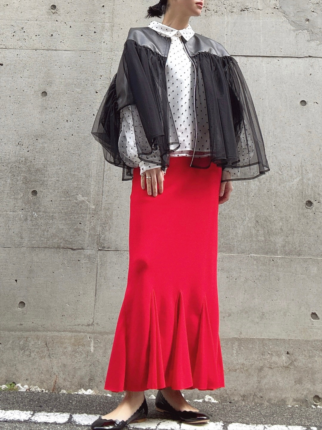 程よくタイトでマーメイドシルエットが綺麗なスカート。