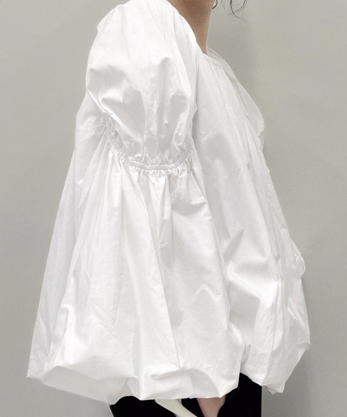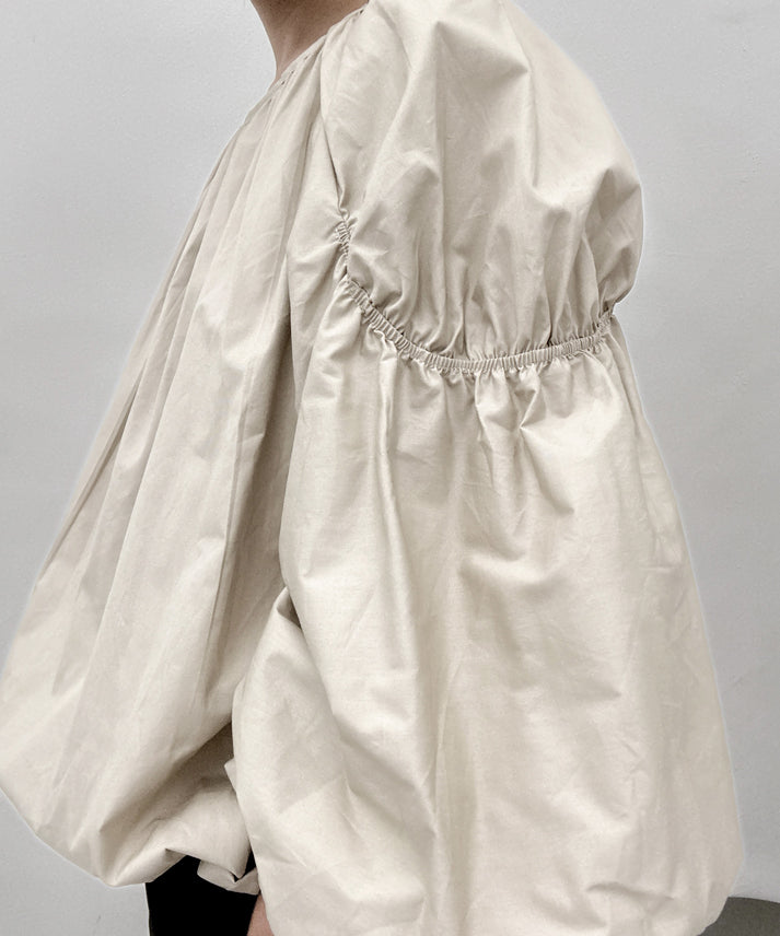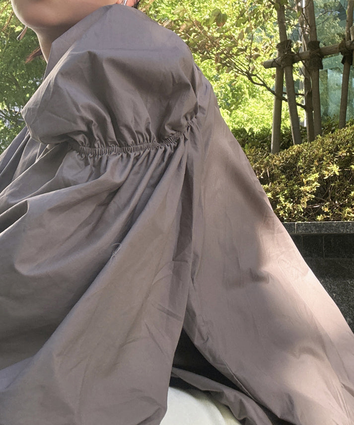 ボリューム袖にギャザーも入っていて動きがあるデザインが特徴。