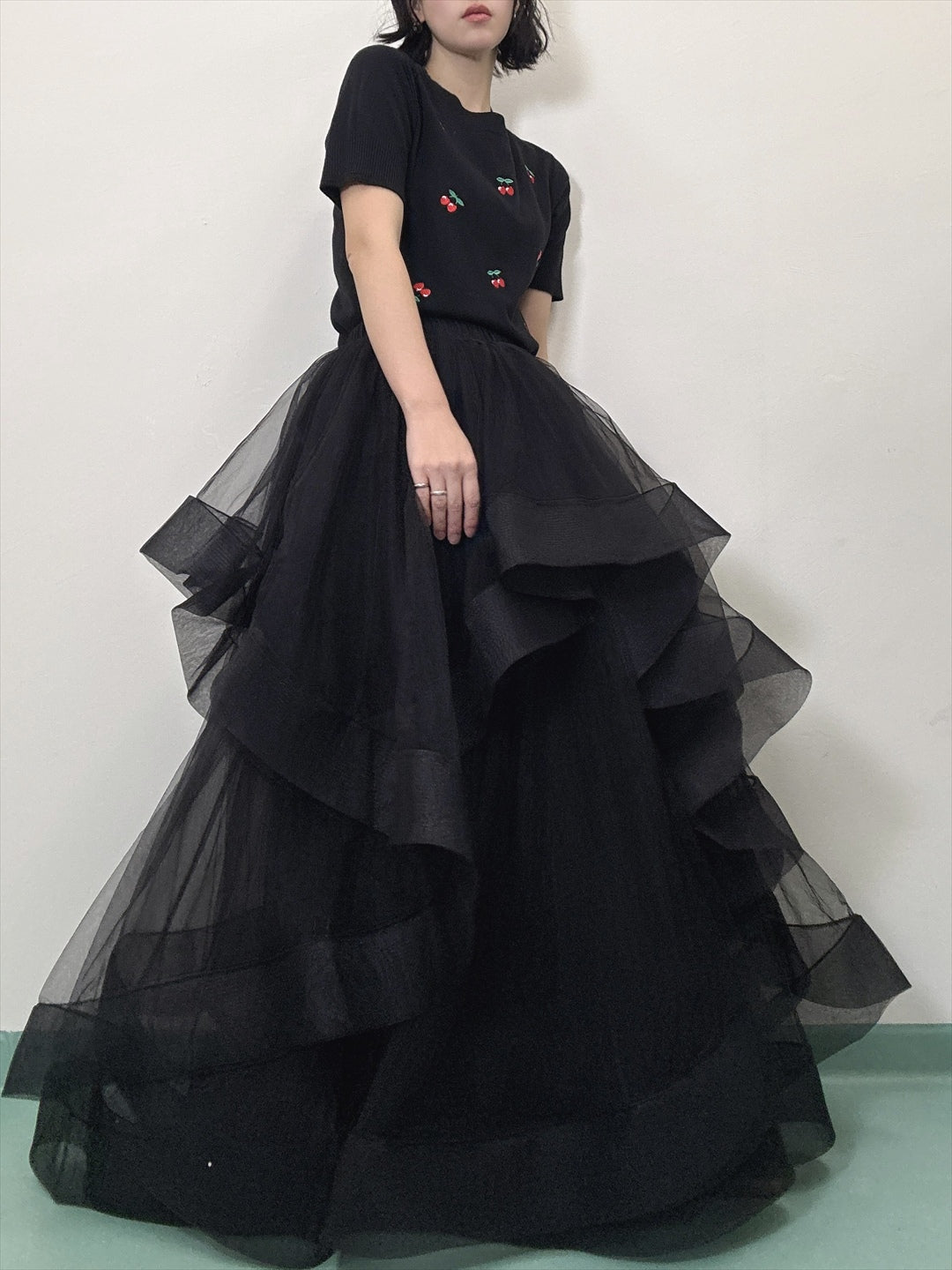 see-through ruffle skirt