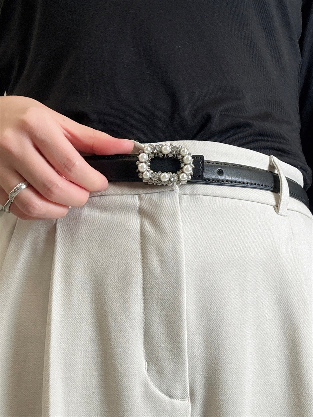 square narrow belt with pearl