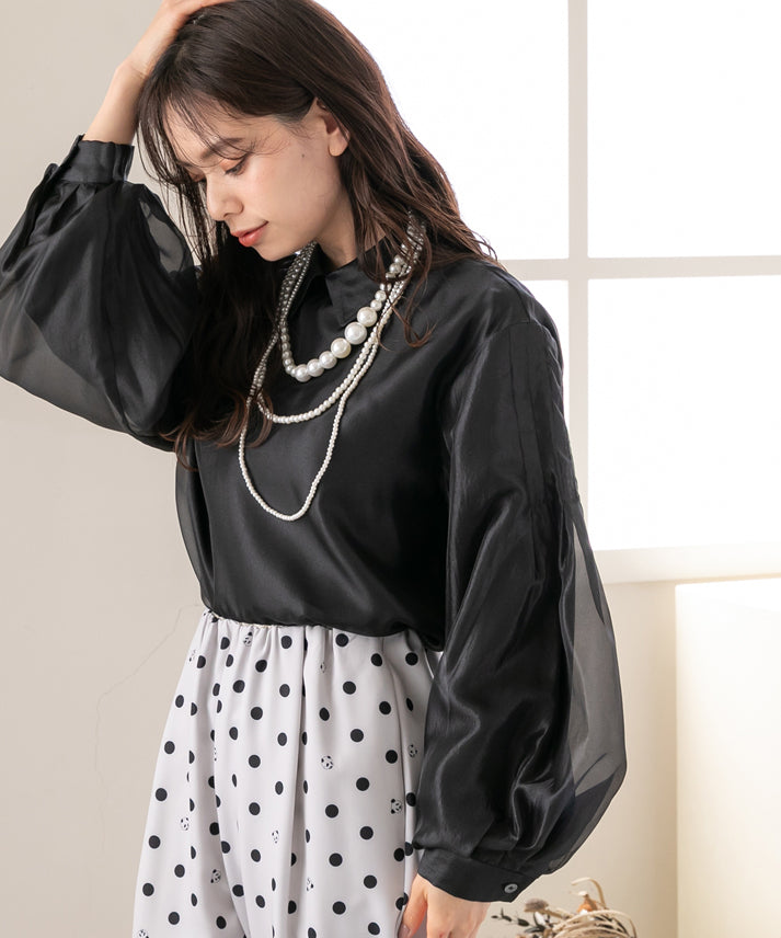 光沢のある生地と軽やかなドレープが魅力のアイテム。クリーンで柔らかい印象を与える4色で、透け感がありながら上品さを失わないデザインです。フワリとした袖が動くたびに女性らしさを引き立て、クラシックな襟元とモダンなバルーンスリーブの組み合わせが、洗練されたスタイルを演出します。オフィスからカジュアルまでさまざまなシーンで活躍するブラウスで、デイリーウェアにはもちろん、特別な日のアンサンブルにも映える一着です。