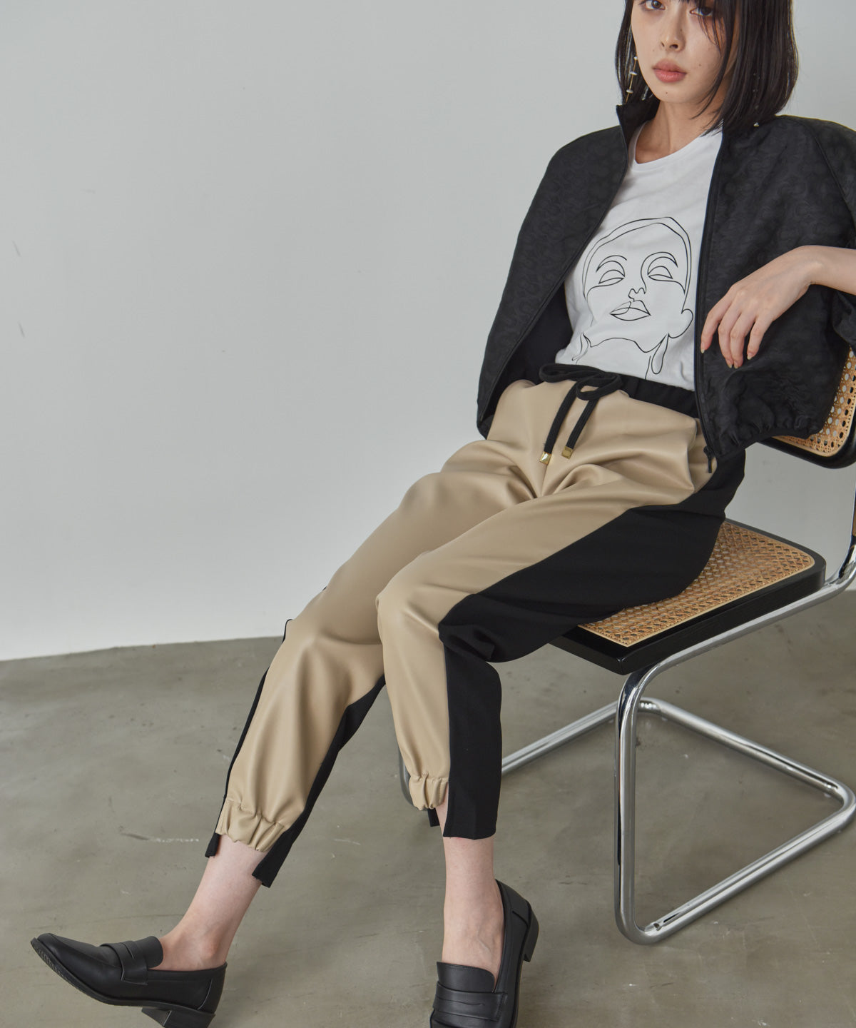 洗練されたスタイルと快適な着心地を兼ね備えた、フェイクレザーの前後生地切り替えパンツです。前面は高品質なフェイクレザー素材で、エッジの効いた印象を与えつつも、柔らかな後面生地で動きやすさを確保。ユニークなデザインがおしゃれなアクセントを加え、多彩なスタイリングに適応します。大人の女性にふさわしい上品な雰囲気と、自由な表現を叶える一本。ファッションの可能性を広げる、自信溢れる一着です。