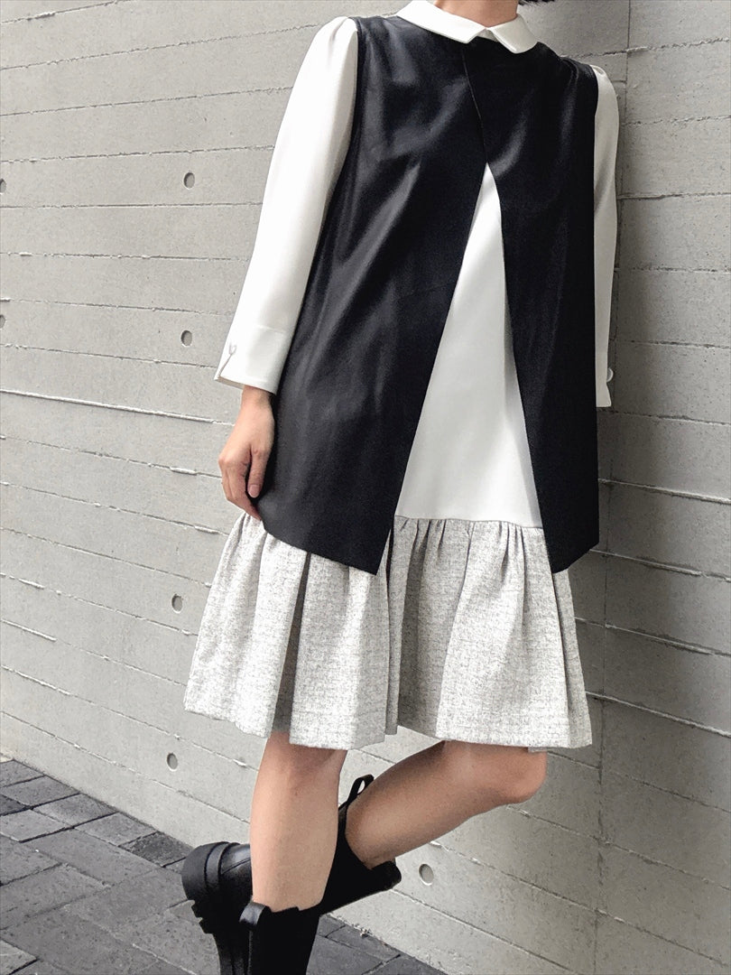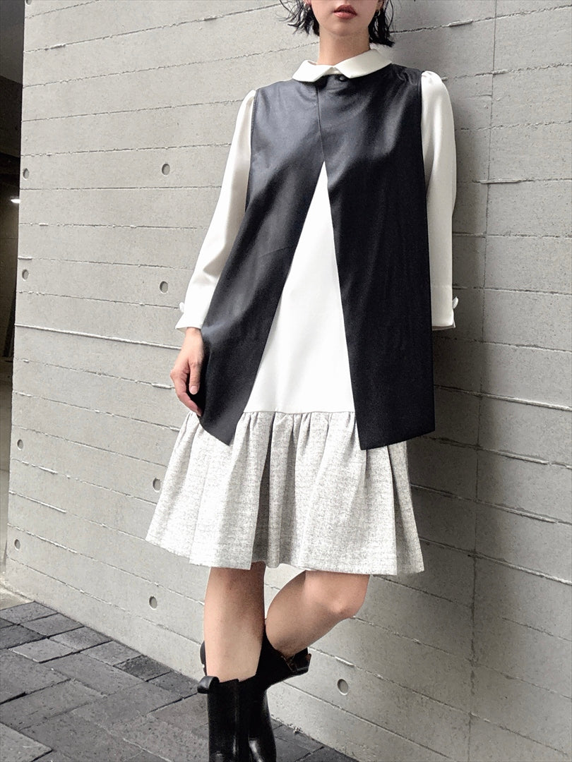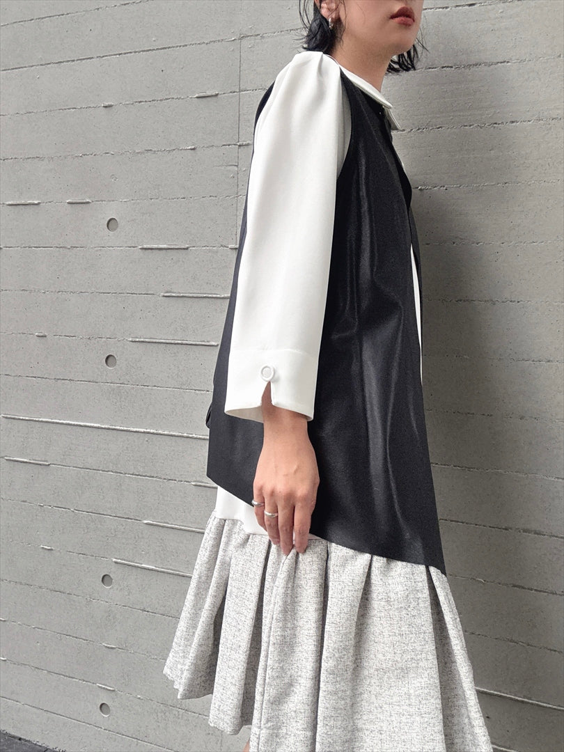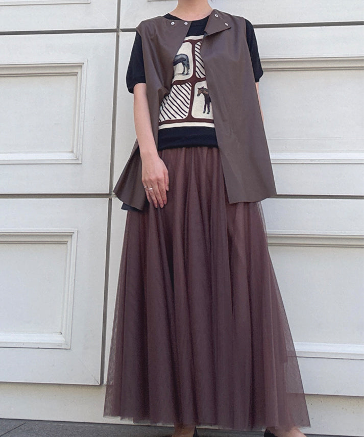 トップスに合わせて前後のデザインを使い分けし使用するとスタイリングの幅が広がる優れもの。
