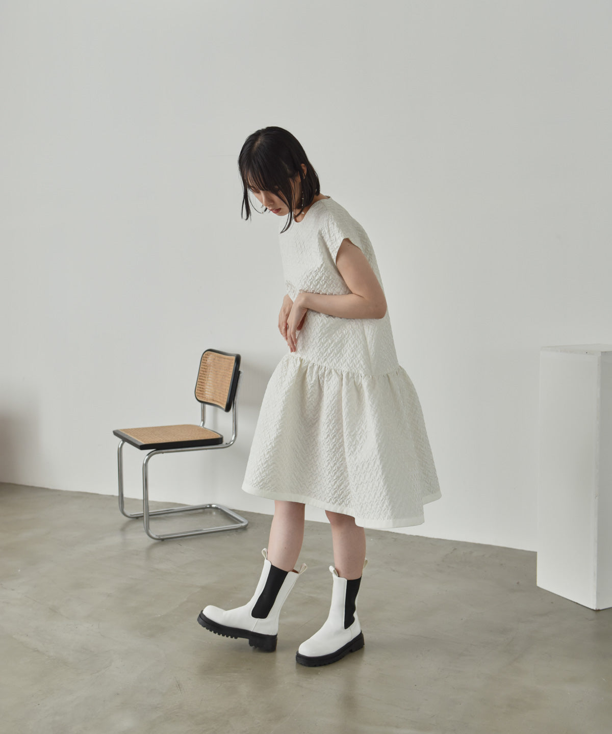 ハート柄が散りばめられた、ボリュームのあるショートワンピース。ホワイトとブラックの2色展開で、あなたの可愛らしさを一層引き立てます。ハートのデザインがキュートな印象を与え、スカートのボリューム感が女性らしいシルエットを際立たせます。歩くたびに揺れる動きが愛らしさを倍増させ、スタイルに一味の可憐さをプラス。大人の女性でも楽しめるアイテムです。