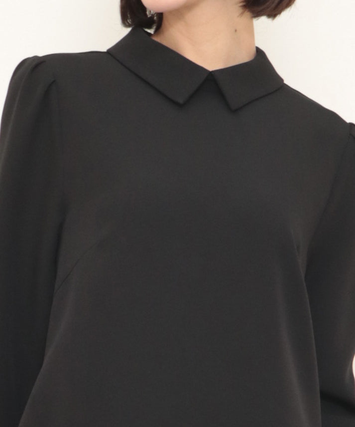 襟付きデザインが上品な印象を与えるワンピース。 裾部分には立体感のあるジャカード調の異素材を取り入れ、華やかさをプラス。 シックなブラックが洗練された雰囲気を演出し、フォーマルなシーンはもちろん、デイリーにも取り入れやすい一枚です。 七分袖が手元をすっきりと見せ、シンプルながらもディテールにこだわった仕上がりに。