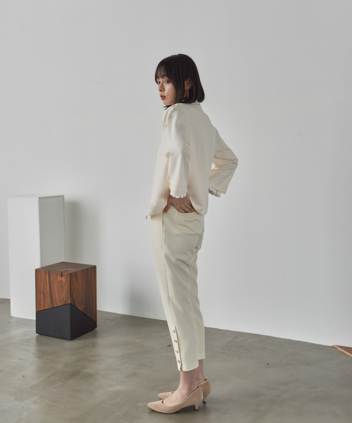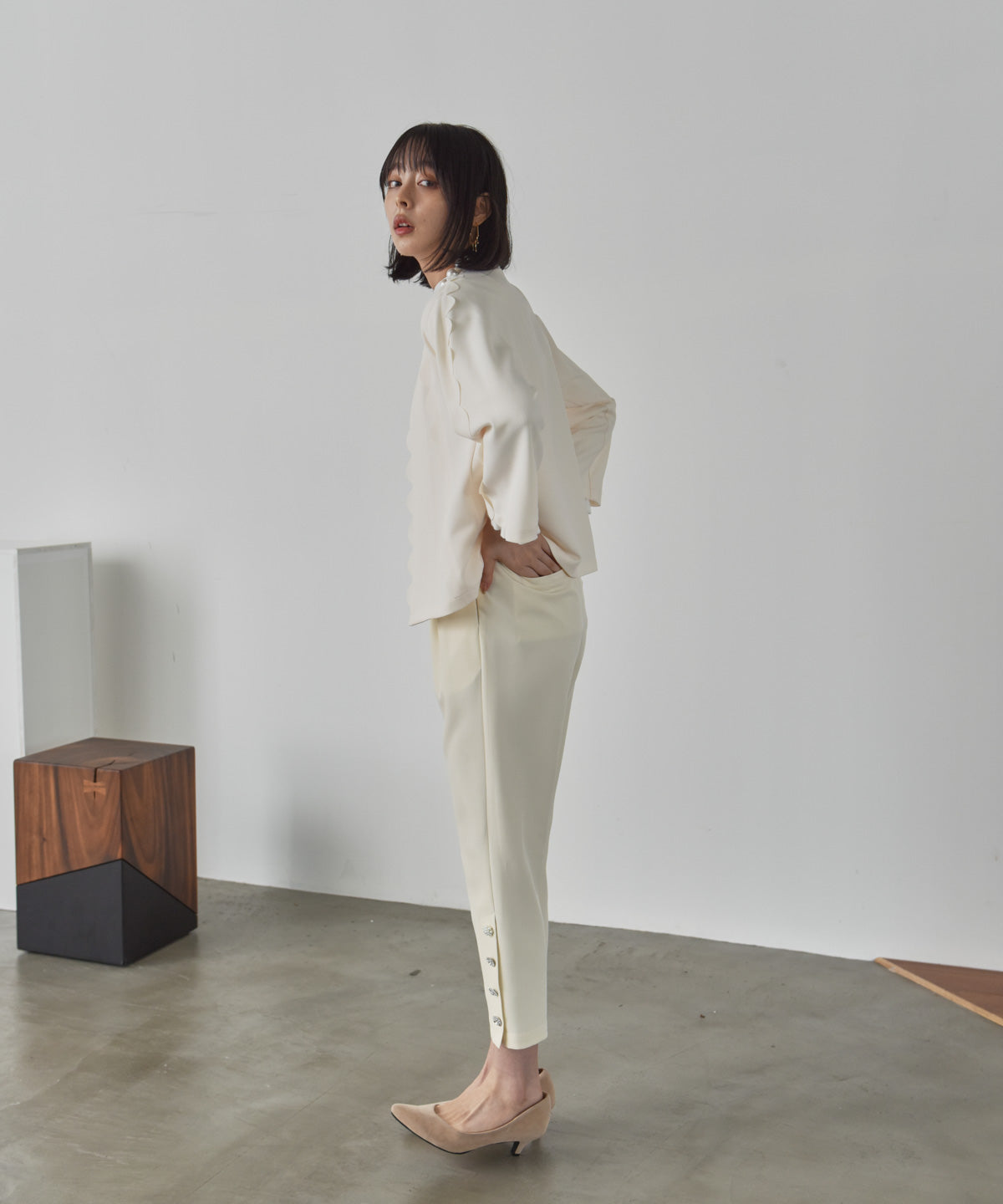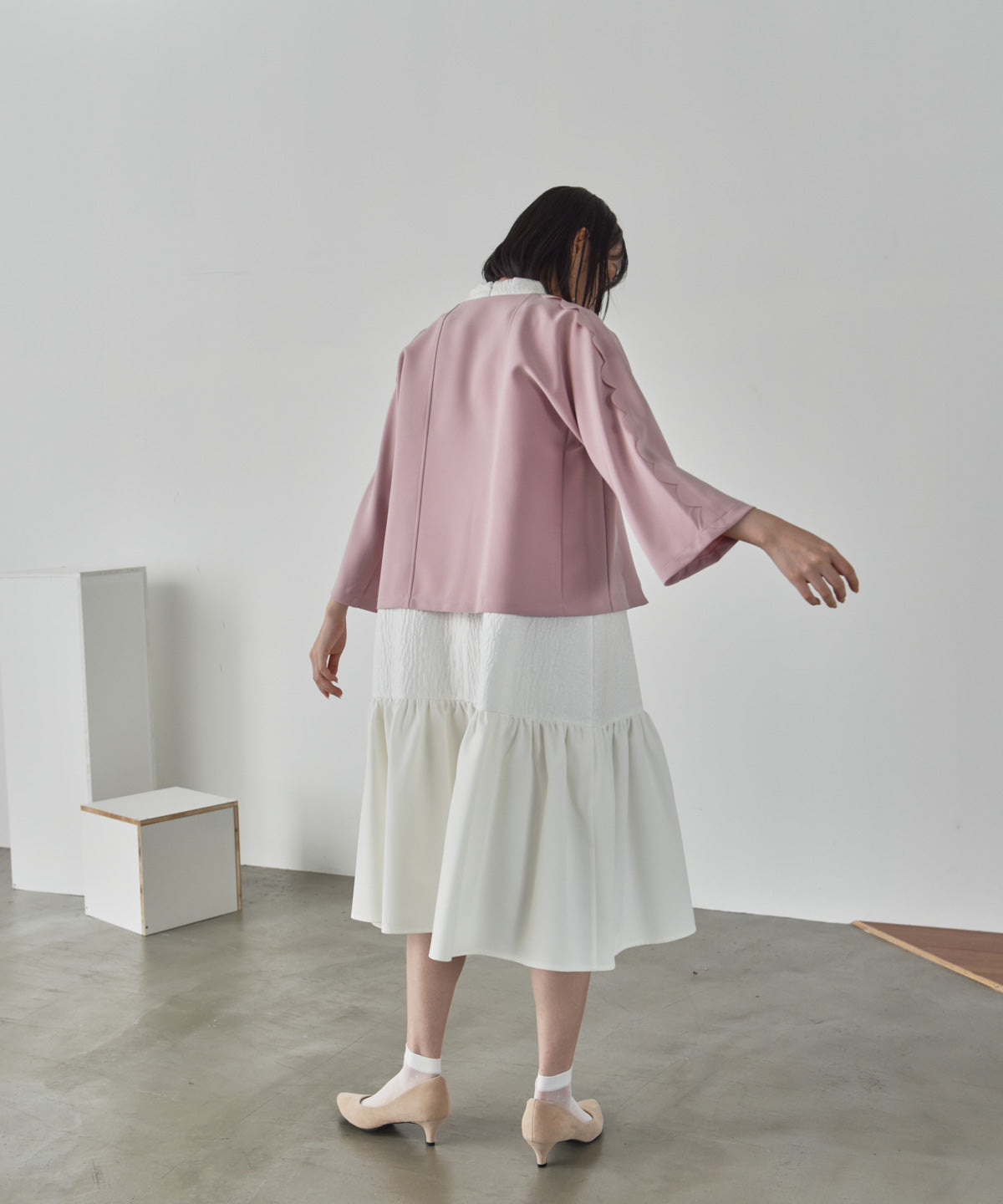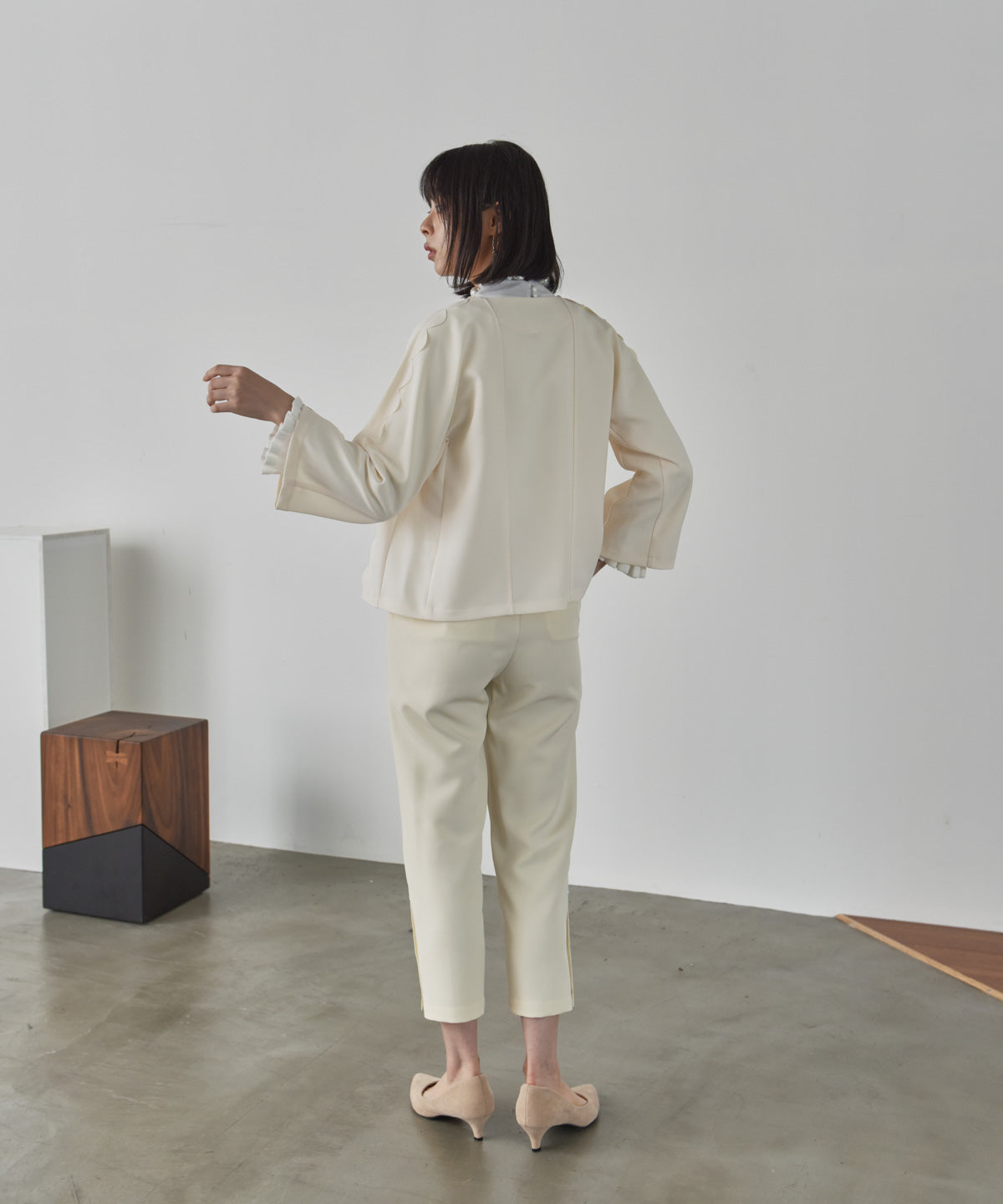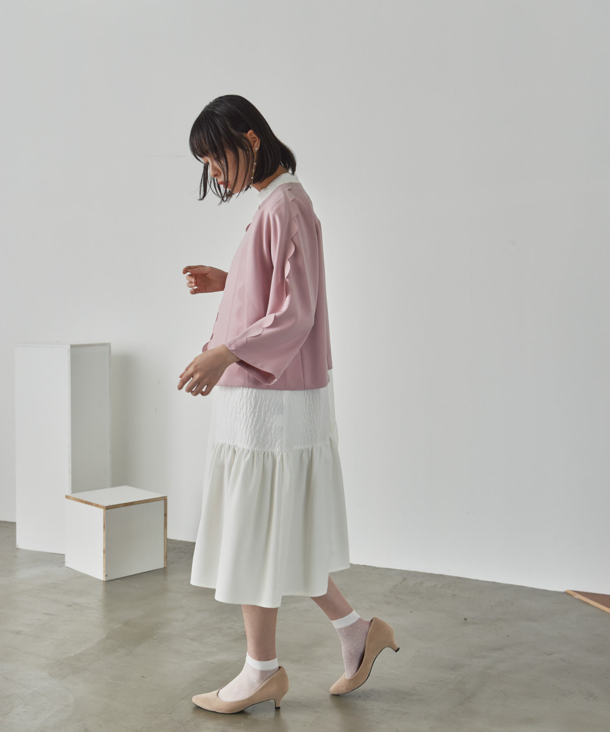 上品な装いを叶える、袖にスカラップデザインが施されたジャケットが登場しました。