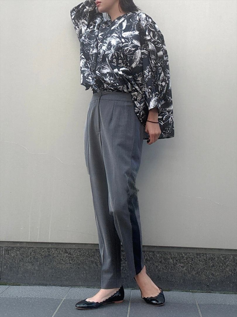 センタープレスが脚長効果を生み、スマートで洗練された印象を演出するアイテム。サテン素材のサイドラインが光沢感を加え、コーディネートに華やかさをプラスします。ウエスト部分は後ろがゴム仕様で、スタイルアップと共に快適な着心地を実現します。エレガントさと機能性を兼ね備えた一着で、オフィスからカジュアルまで幅広いシーンで活躍します。