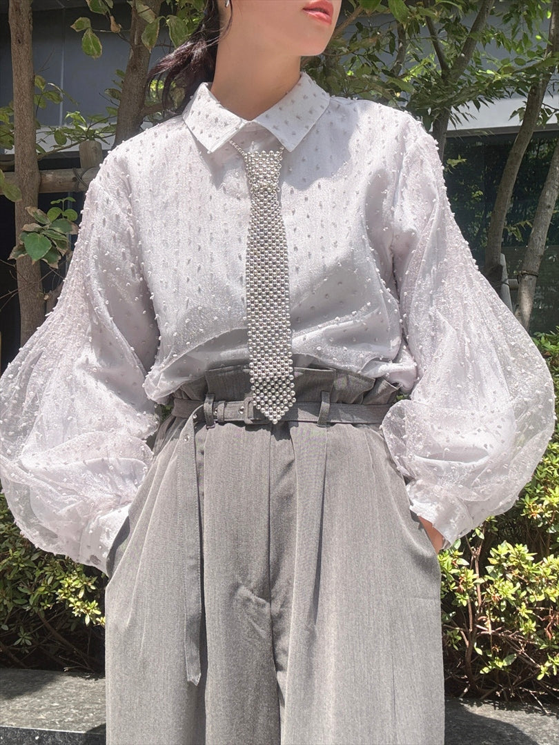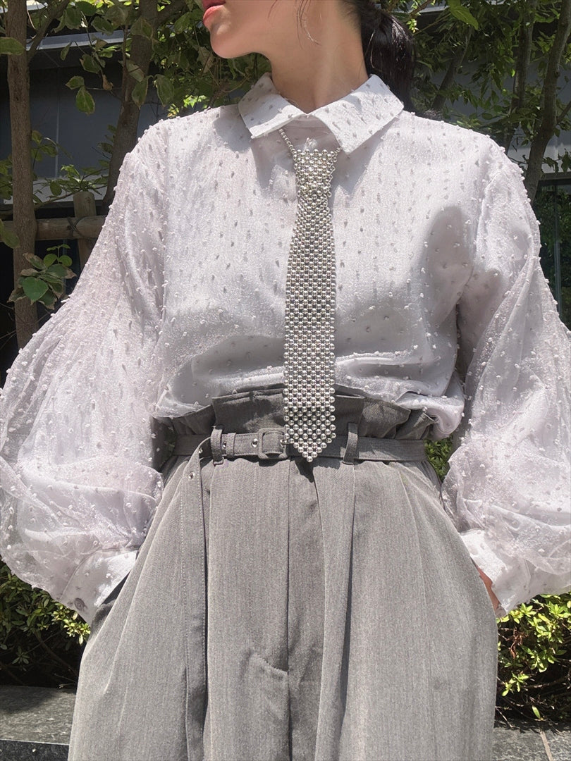 ネクタイのデザインでつけるだけで華やかな印象に。