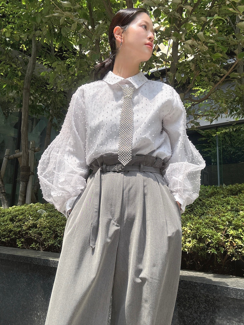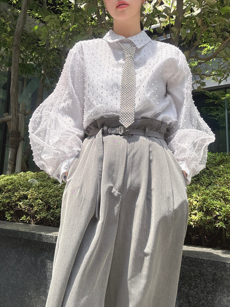 Grayのtopsに合わせてワントーンコーデも楽します。